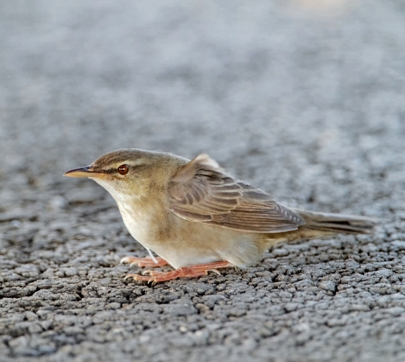 鉴别特征:体长约16 cm的中型褐色莺类。喙较粗壮,上体灰褐色,具不太明显的白色眉纹。下体白色,胸侧、两胁及尾下覆羽均为淡褐色或皮黄色。