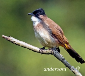 鉴别特征:体长约 20 cm。上体大部分为灰褐色,头部具不突出的黑色羽冠,具一条较明显的灰褐色胸带。喉部洁白,臀部鲜黄色。andersoni 亚种背部颜色较淡,胸部横带淡而不显著。