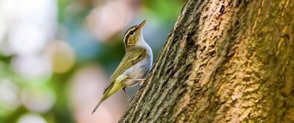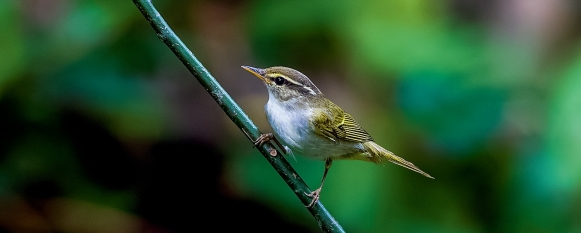鉴别特征:体长约12 cm。上体橄榄绿色,头部偏灰色,具灰色顶冠纹和淡皮黄色眉纹,翼表有一道翼斑。下体白色,尾下覆羽为黄色。上喙深灰色,下喙黄褐色。