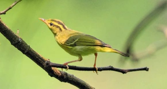 鉴别特征:体长约11 cm。上体为鲜艳的橄榄绿色,顶冠纹淡黄色或黄绿色,眉纹柠檬黄色,侧冠纹黑色,贯眼纹暗绿色或近黑色,两道翼斑淡黄色。下体为鲜亮的柠檬黄色。上喙深灰色,下喙橙黄色。