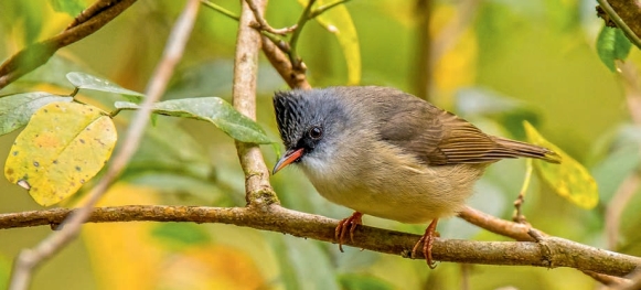 行为:性喧闹,成小群在森林冠层觅食昆虫或果实。