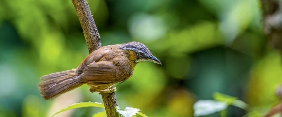 鉴别特征:体长约12 cm,体形较小的鹛类。体羽多橄榄褐色,头顶及颈部黑色,并具白色纵纹。白色和黑色的眉纹较明显,喉部及颏部均为灰色。