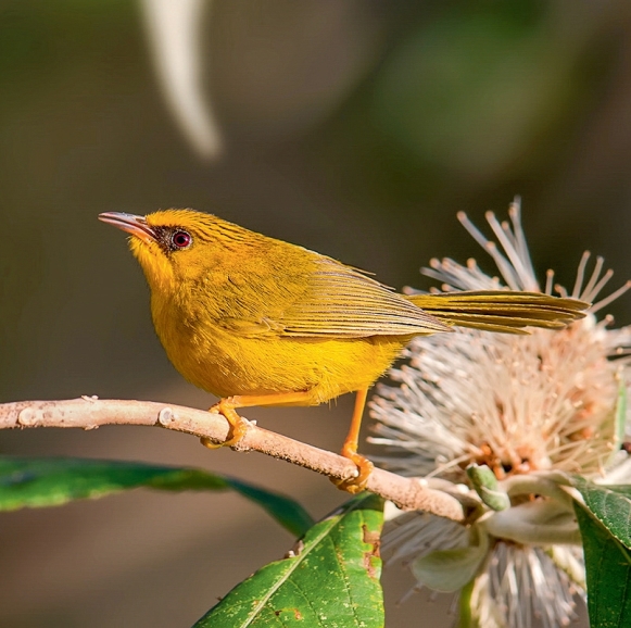 鉴别特征:体长约12 cm,体形较小的鹛类。体羽多为黄橄榄色,金黄色的顶冠具黑色细纹,眼先黑色,下体黄色。