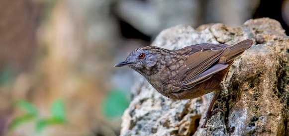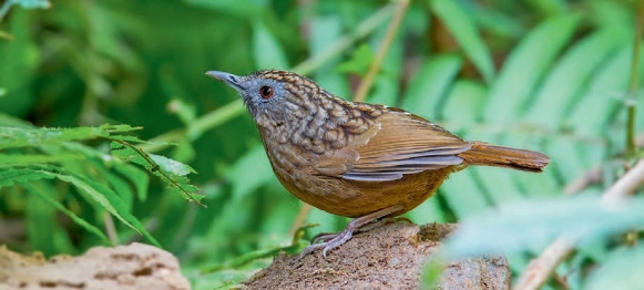 鉴别特征:体长约15 cm,体形稍小的鹛类。体羽多为褐色,上体大部具深色的鳞状斑,具显著的黄白色眉纹,翼上具一道白色点斑。
