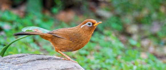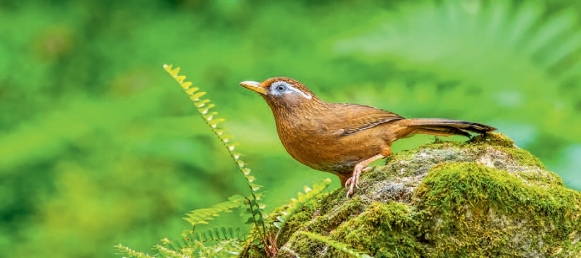 鉴别特征:体长约23 cm。全身棕褐色,头顶、颈部、胸部均具细纵纹。白色的眼周向眼后延伸成明显的眉纹。