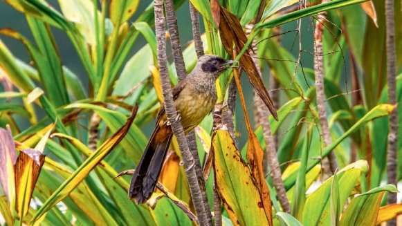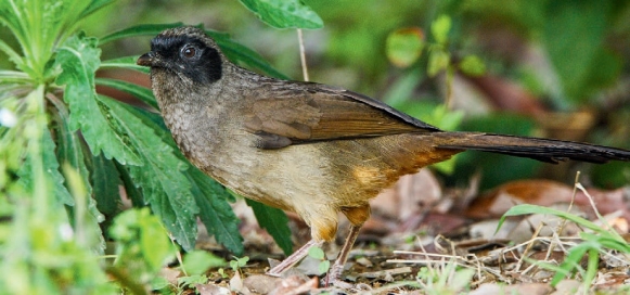 鉴别特征:体长约30 cm。体羽多灰褐色,眼罩黑色,臀部栗色。