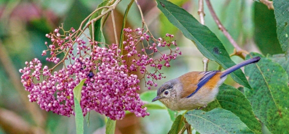 行为:常与其他鸟类混群,在树冠层觅食昆虫和植物果实。