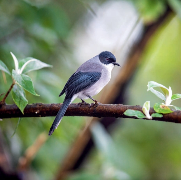 鉴别特征:体长约24 cm。体羽多为灰色,上体稍褐。头部、翼和尾羽均为黑色,尾具浅色端斑。