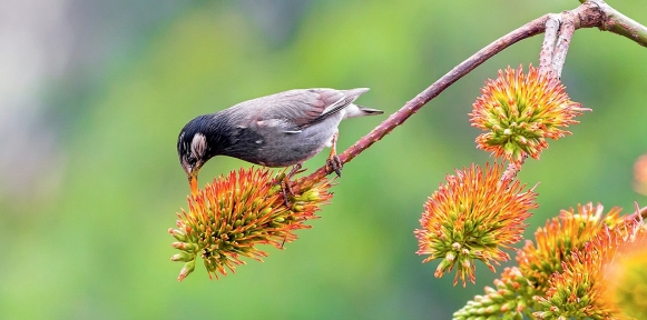 行为:常与其他椋鸟混杂在一起觅食植物果实。