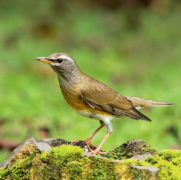 鉴别特征:体长约23 cm。头部灰色,具显著的白色眉纹及眼下斑,上体橄榄褐色,胸部及两胁赤褐色。