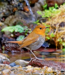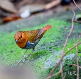 相似种:红尾歌鸲。体形稍小,额部及胸部无橘黄色,胸部具橄榄褐色扇贝形纹。