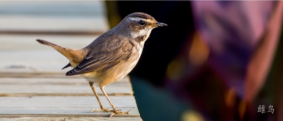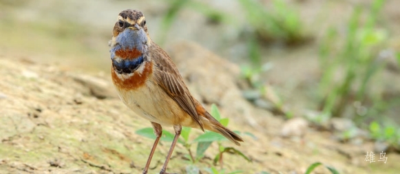 鉴别特征:体长约14 cm。雄鸟上体灰褐色,眉纹白色,喉部具蓝色、栗色及黑白色相间的图纹。雌鸟喉部偏白色,上胸部具黑色和浅蓝色杂斑。
