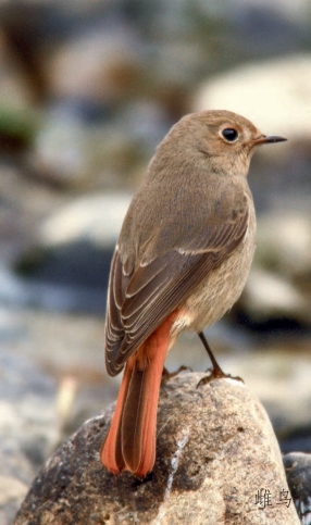 相似种:北红尾鸲。雄鸟头顶至颈背部银灰色,背部黑色,白色翼斑显著,雌鸟具白色翼斑。