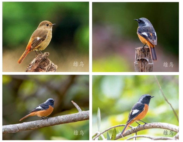 相似种:黑喉红尾鸲。雄鸟头顶至上背部灰色,白色翼斑窄小。雌鸟无翼斑。