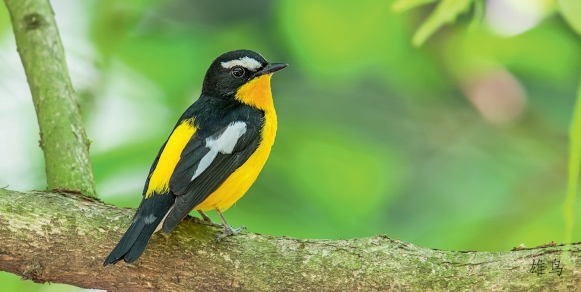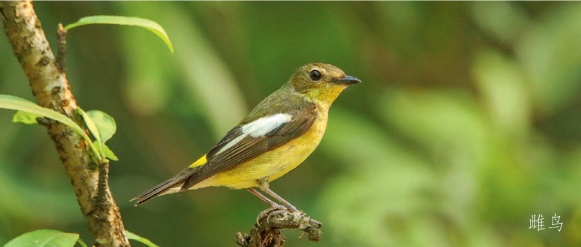 鉴别特征:体长约14 cm,体羽由黄、白、黑三色组成。雄鸟上体黑色,翼斑和眉纹为白色,腹部黄色。雌鸟上体暗褐色,腰部暗黄色,腹部色淡。