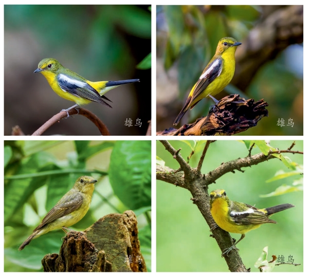 相似种:黄眉姬鹟。雄鸟上体黑色,腰部橙黄色;雌鸟上体橄榄褐色,腰部橄榄绿色。