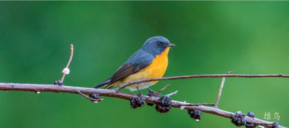 鉴别特征:体长约13 cm。雄鸟上体青石蓝色,外侧尾羽基部白色,胸部橘黄色,到腹部渐变为皮黄白色。雌鸟整体为橄榄褐色,翼上大覆羽具棕白色端斑,下体浅褐色。