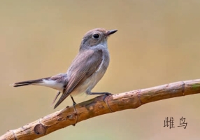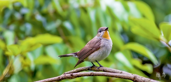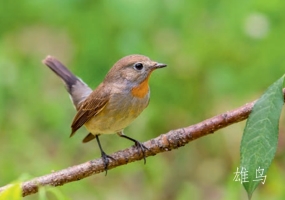 鉴别特征:体长约13 cm。体羽多为灰褐色,尾羽基部外侧明显白色。雄鸟喉部橙黄色,雌鸟喉部白色。