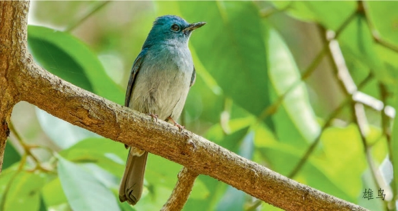 鉴别特征:体长约18 cm。雄鸟上体亮丽钴蓝,眼先黑色,喉部及胸部浅蓝色,腹部和尾下覆羽近白色。雌鸟多褐色,眼圈及眼先黄褐色,尾羽多为棕褐色。