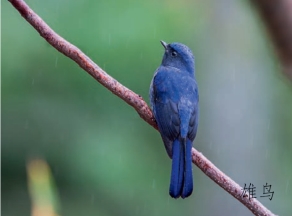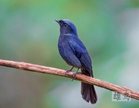 鉴别特征:体长约21 cm。雄鸟上体蓝色,颈侧具辉蓝色的斑,眼罩黑色,下体灰黑色。雌鸟橄榄褐色,颈侧也具蓝色斑块,喉部皮黄色。