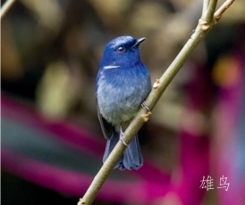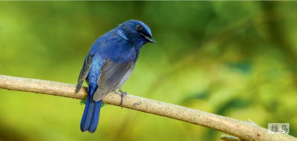 鉴别特征:体长约14 cm。雄鸟上体蓝色,颈侧具辉蓝色的斑,眼罩及喉部显黑色,至臀部慢慢变白。雌鸟橄榄褐色,颈侧也具蓝色斑块,喉部皮黄色。