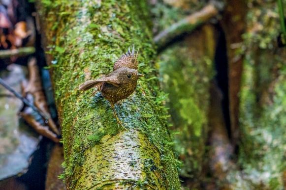 鉴别特征:体长约10 cm,体形极小而尾羽很短的鹛类。体羽多褐色,具白色点斑。两翼及尾羽有棕色和黑色横斑。