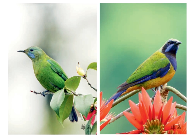 相似种:蓝翅叶鹎。雄鸟喉部黑色,腹部偏绿色;雌鸟及亚成鸟颊纹蓝绿色,颏部及喉部蓝色。