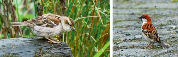 鉴别特征:体长约14 cm。雄鸟头冠及上体为鲜艳的黄褐色或栗色,上背部具黑色纵纹,喉部黑色,颊部污白色。雌鸟颜色较暗,具深色贯眼纹及黄白色眉纹。intensior亚种下体黄色较多。