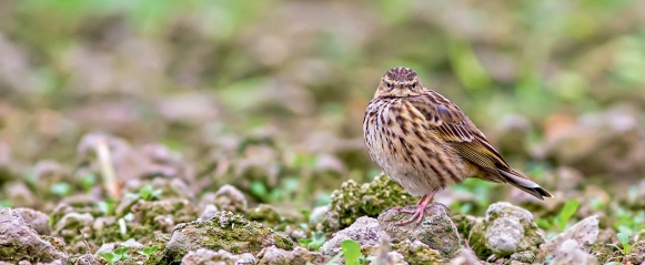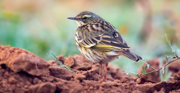 鉴别特征:体长约15 cm。上背部灰色并具黑色纵纹,眉纹粉皮黄色,下体偏黄白色,胸部及两胁具浓密的黑色斑点或纵纹。繁殖期下体为粉红色,但广西的个体不太明显。