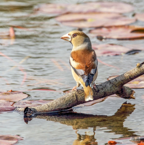 鉴别特征:体长约17 cm。体羽偏褐色,喙特大而明显,翼辉蓝黑色,具灰白色的宽大肩斑。