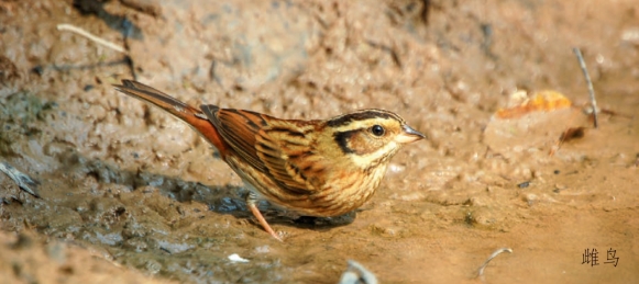 鉴别特征:体长约15 cm。成年雄鸟头部偏黑色,具显著的白色顶冠纹、眉纹和髭纹,腰部棕色。雌鸟体羽颜色较暗淡。