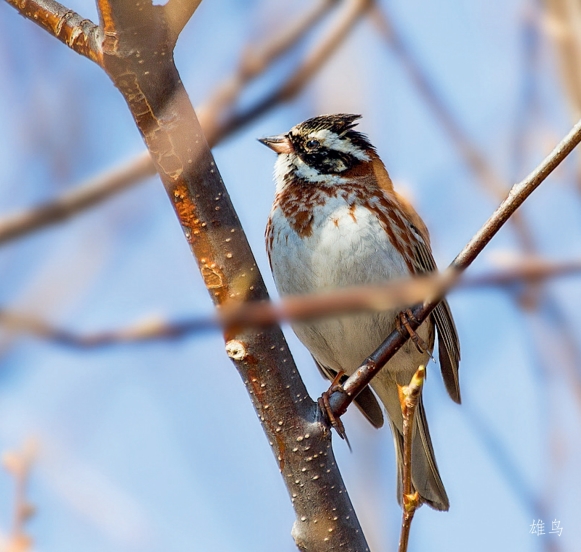 鉴别特征:体长约15 cm。雄鸟头部具黑白条纹,颈背部、胸带、两胁纵纹及腰部均为棕色,具不明显的羽冠,腹部白色。雌鸟体羽颜色较暗淡。
