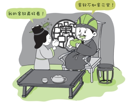 金子的纯度有高低之分:青色的含金七成,黄色的含金八成,紫色的含金九成,赤色的就是纯金了。