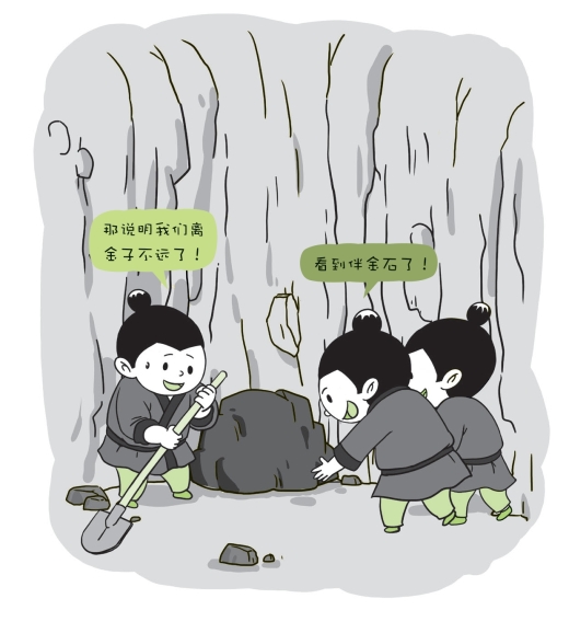 如果采金的人开凿矿井到足够深的时候,看到了伴金石,就可以找到金子了。