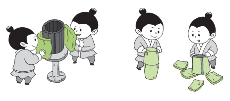 普通百姓建造民房时使用的房瓦,是四片合在一起的。制作时先用圆桶做模具,在桶外画四条均等的分割线。把和好的黏土踩成熟泥,堆成厚厚的长方形泥块。然后切下一片一厘米多厚的陶泥,把它包裹在圆桶的外围。等到泥巴晾干后脱模,包裹的一圈陶泥自然就分裂成大小相等的四块瓦坯。