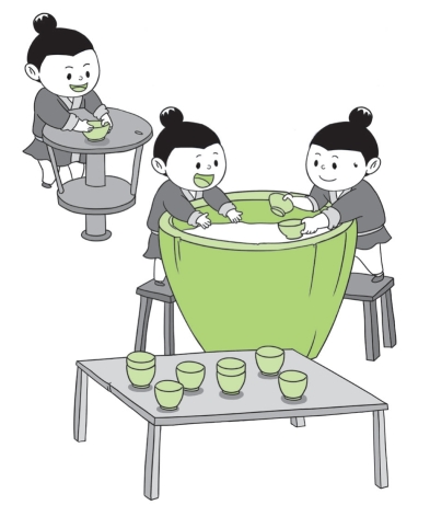 另一种瓷坯叫作圆器,各种大大小小的杯盘碗碟都属于这类,是人们生活中的必需品。