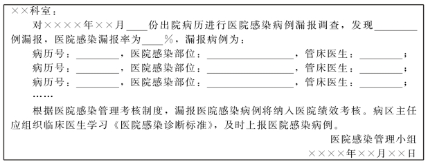 ×××乡(镇)卫生院医院感染病例监测及漏报结果反馈具体内容分别见表2-3、表2-4。