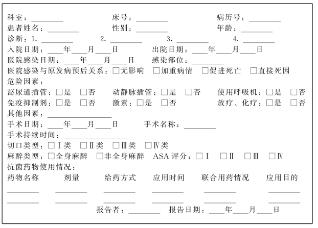 表2-2 ×××乡(镇)卫生院医院感染漏报监测记录