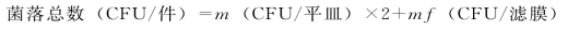 式中,m为两平行平皿的平均菌落数;mf为滤膜上菌落数。