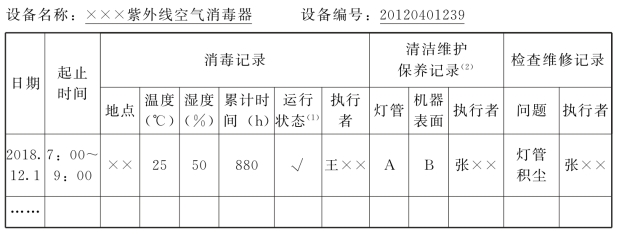 ×××乡(镇)卫生院固定安装空气消毒器使用维护记录表具体内容见表3-1。