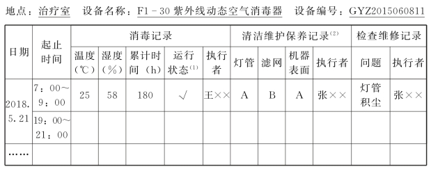 表3-2 ×××乡(镇)卫生院移动式空气消毒器使用维护记录表