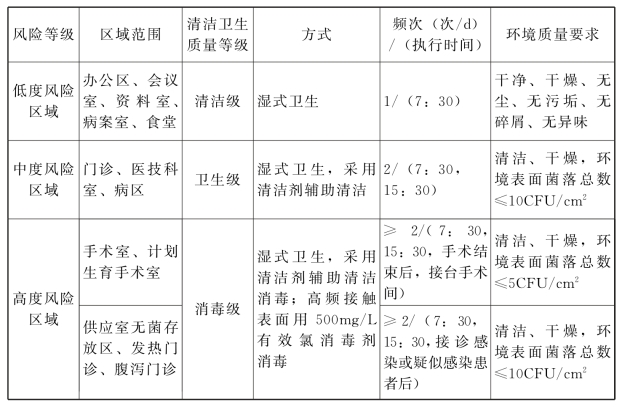 (一)医院环境风险等级与清洁卫生质量等级要求