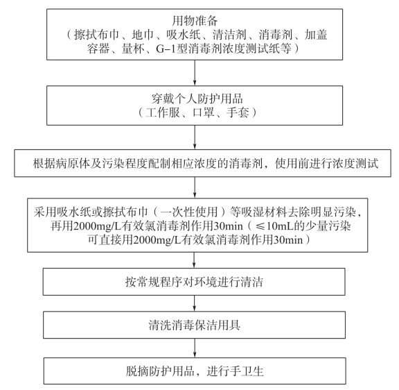 注:(1)环境表面被患者体液、血液、排泄物、分泌物等污染,立即实施污点清洁与消毒。