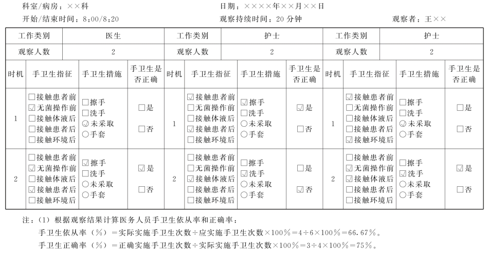 (四)×××乡(镇)卫生院手卫生依从性与正确性观察表