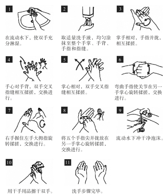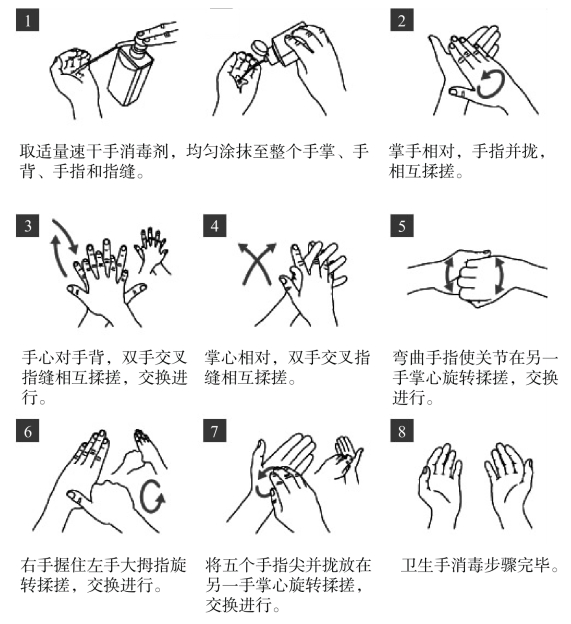⑤手消毒剂的取液量、揉搓时间及使用方法遵循产品使用说明。