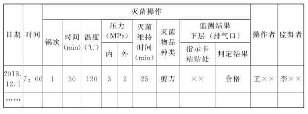 表5-2 ×××乡(镇)卫生院消毒供应室压力蒸汽灭菌器操作过程记录表