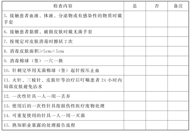 (一)×××乡(镇)卫生院中医针刺类技术相关性感染预防控制措施质量检查表