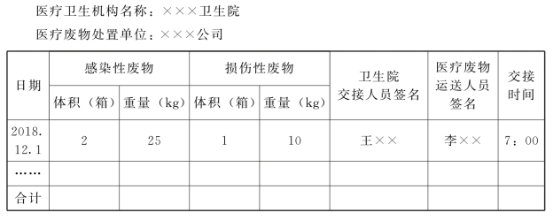 注:(1)村卫生室的医疗废物,每两日交上级乡(镇)卫生院,交接双方做好登记记录。