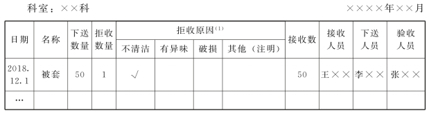 表13-9 ×××乡(镇)卫生院医用织物质量交接验收记录表