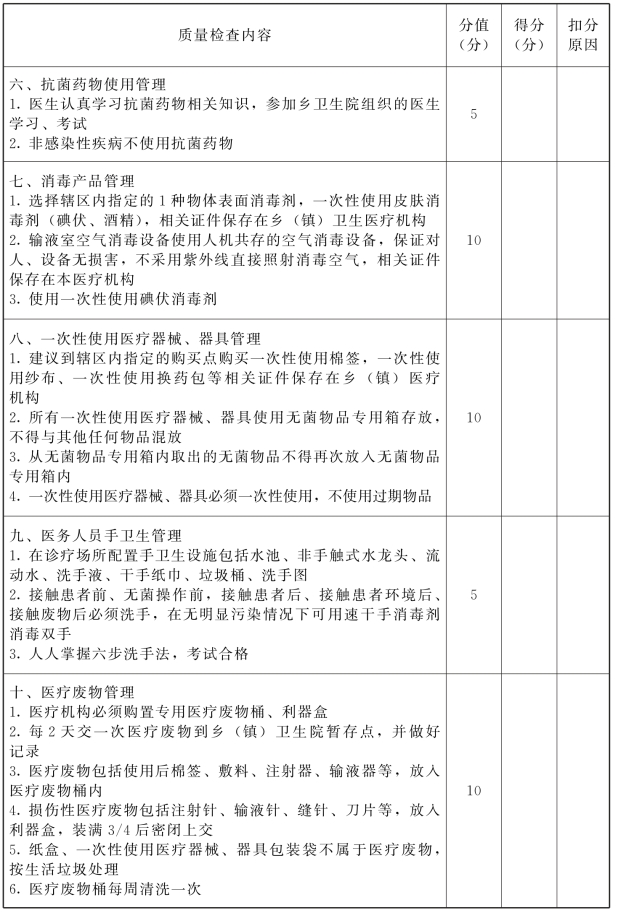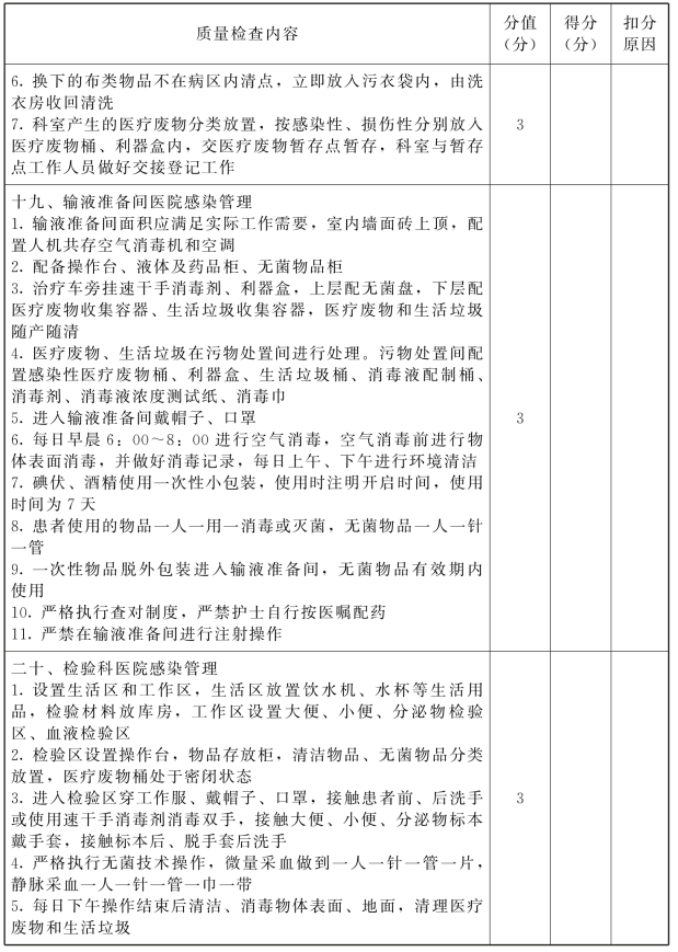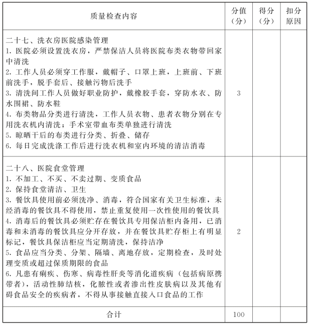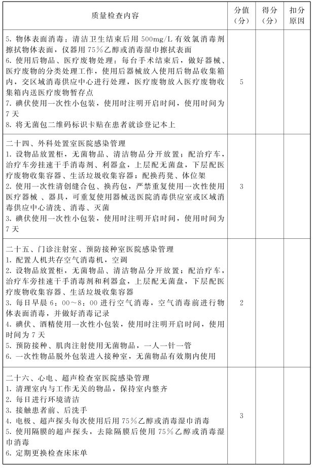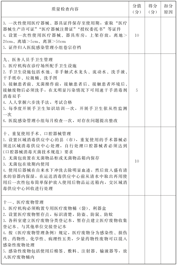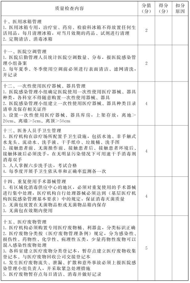 100张住院床位以下基层医疗机构医院感染管理质量检查表的具体内容见表14-4。